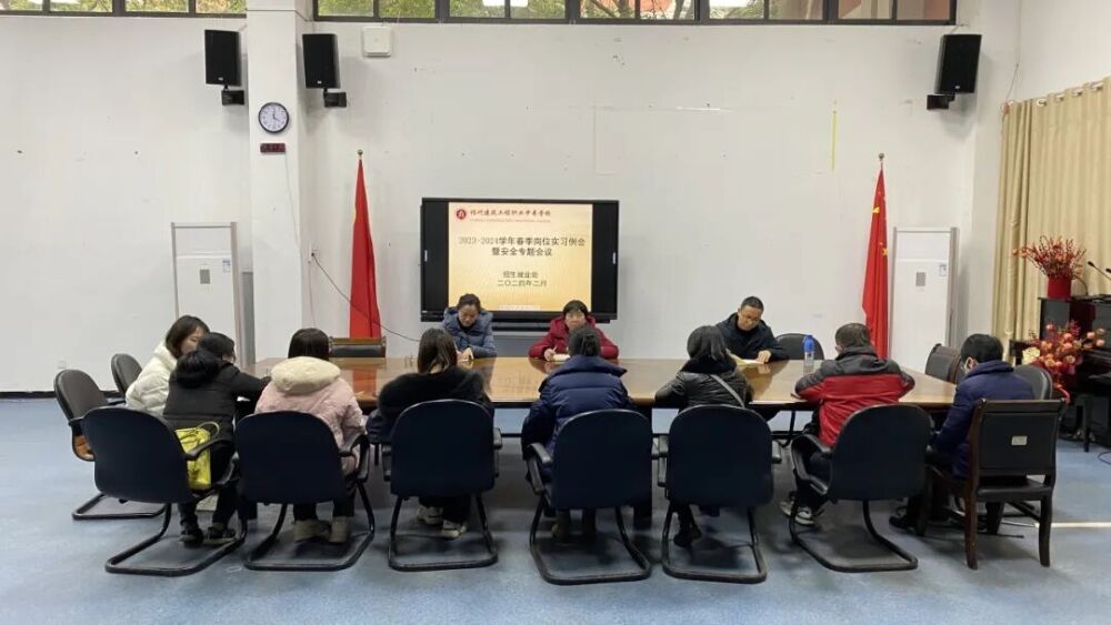 为进一步加强我校学生实习安全管理,切实提高学生实习安全防范意识,2月27日下午,我校招生就业处在一楼教工之家召开了实习安全专题会议。本次会议由招生就业处卢赏主任主持, 杨冰副校长、媒体宣传中心林松江主任、21级全体实习指导老师和张颖段长参加了本次会议。