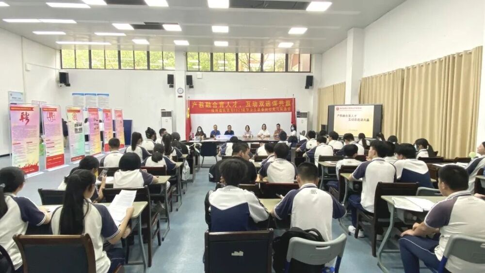 为深入学习贯彻党的二十大精神和习近平总书记关于职业教育的重要指示批示精神,更好服务地方产业经济发展。2023年9月13日下午,我校成功举办以“产教融合育人才,互动双选谋共赢”为主题的2021级毕业生秋季岗位实习双选会。