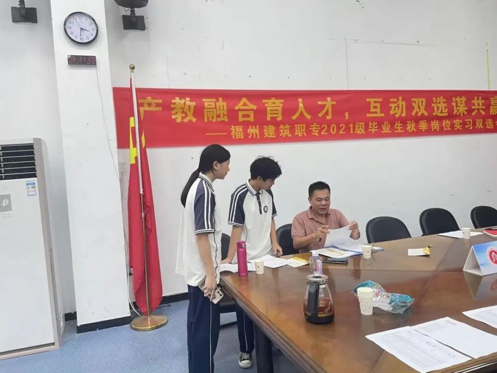此次双选会共邀请了7家行业内知名企业单位来校选才。福建顺鼎工程管理有限公司、福建振豪建设集团有限公司、福建京闽建设工程有限公司、永利达灯光照明、福州广荣建设有限公司、福建鼎圣工程管理有限公司、福建中宅建筑装饰工程有限公司等数家校企合作实践基地也参与其中,为本次参加实习的园林技术、建筑工程造价、计算机平面设计、电梯安装与维修保养,古建筑修缮、道路与桥梁工程施工、市政工程施工等8个专业提供实习岗位。