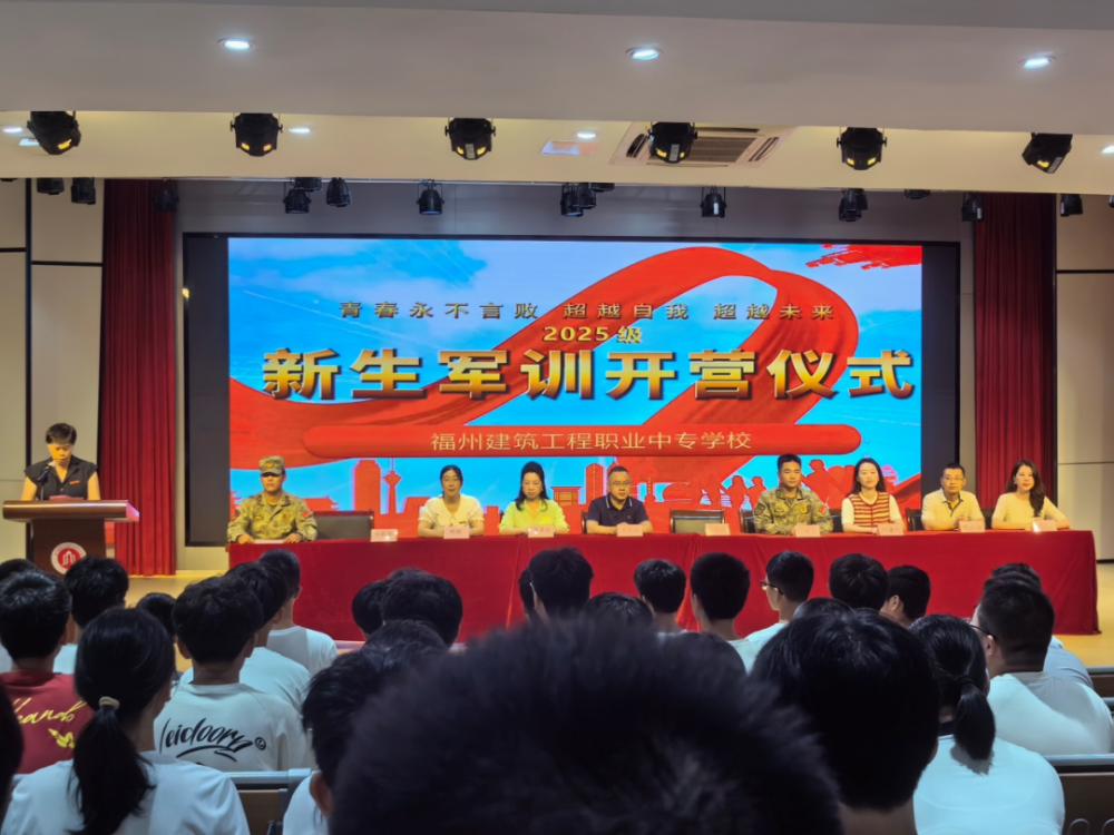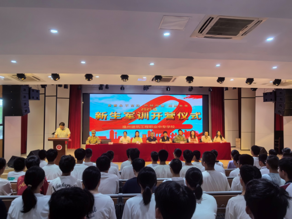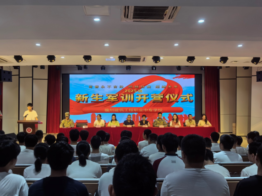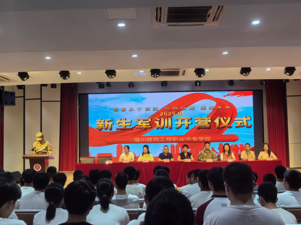金秋十月磨意志,青春如歌扬军威。为增强学生国防意识,提振学生军训士气,9 月23日上午,我校2025级新生军训开营仪式在学校三楼会议室隆重举行。三叉街街道党工委委员、武装部部长乐文灿,仓山区人武部参谋周海飞,学校副校长蔡冠蓉、陈翠琼、严凌旭、胡颖,德育处副主任胡业锋、副主任余晨及全体军训教官、班主任与 2025 级部分新生代表共同出席仪式,本次开营仪式由职一年段长郑祥宇老师主持。