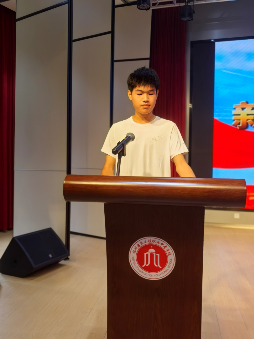 “军训是我们锤炼意志、塑造品格的重要一课。我们定将严守纪律,听从指挥,以饱满的热情投入训练,互帮互助,共同进步。请相信,我们必以昂扬斗志,圆满完成此次任务,为新的学习生活开启崭新篇章” 新生代表杨圣钧同学的发言铿锵有力。作为全体新生的代表,他满载对军训的期待,代表大家立下誓言:将以昂扬的斗志、坚定的信念完成军训任务,把训练中的收获转化为成长的力量,为即将开启的中专生活打下坚实基础,展现了新生们的蓬勃朝气。