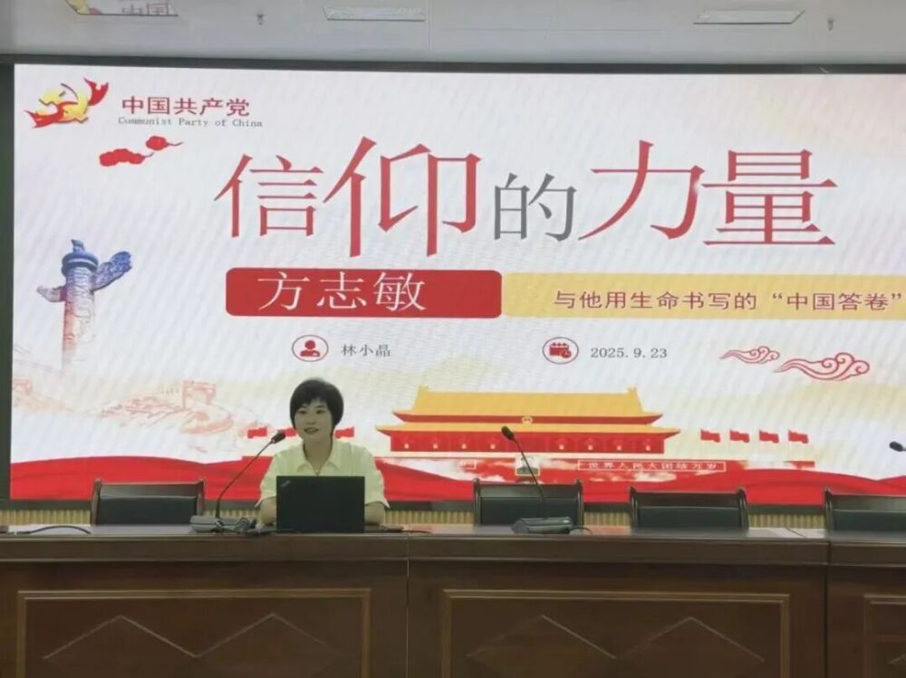 为深化青年学生思想引领,厚植家国情怀,点燃爱国奉献的青春热情,9月23日,福州建筑工程职业中专学校“匠心践悟·强国担当”专业实践活动第一阶段正式启动。首场讲座特邀林小晶老师主讲《信仰的力量——方志敏和他用生命书写的“中国答卷 ”》,高一、高二、高三各班干部及团员代表共150余人齐聚一堂,共同聆听这场深刻而富有教育意义的灵魂洗礼。林小晶老师用详实的史料和深情的讲述,带领我们穿越时空,深刻解读了这份用生命书写的答卷中最核心的章节,引领广大学生干部在党史与专业精神的交融中汲取奋进力量。