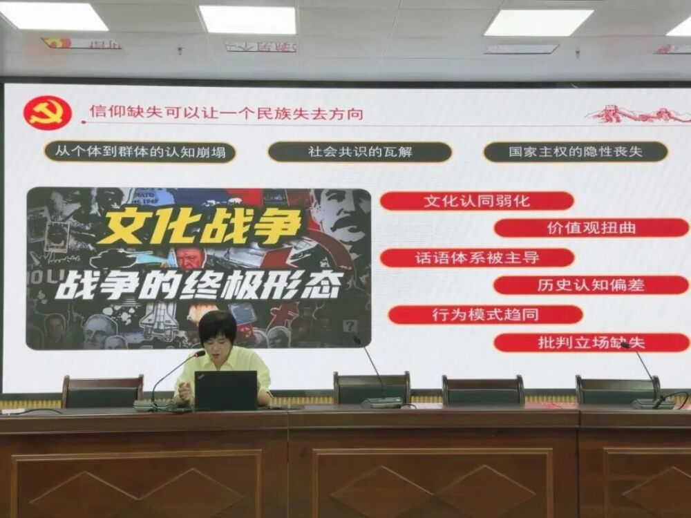 林小晶老师带领大家重温了《可爱的中国》片段,在场同学深深被方志敏在绝境中依然坚定的炽热家国情怀所打动。“信仰缺失可以让一个民族失去方向”,林小晶老师深刻剖析了某些势力通过“思想殖民”等手段发动的文化战争,其目的是导致他国“文化认同弱化”、“话语体系被主导”和“历史认知偏差”。她警示青年学生干部,必须筑牢思想的“承重墙”,时刻保持清醒的批判立场,才能在这场没有硝烟的战争中坚守阵地。这对于即将步入社会、成为国家建设者的青年学生来说,是至关重要的一课。