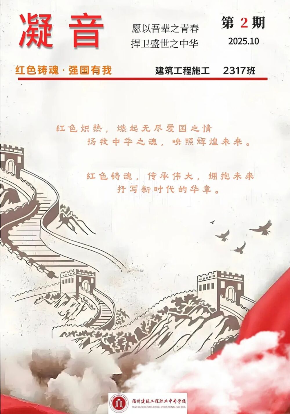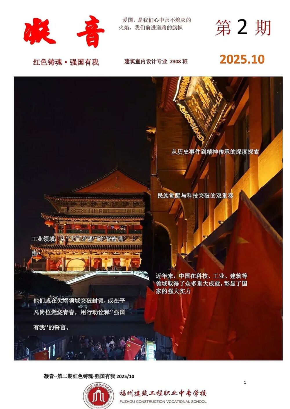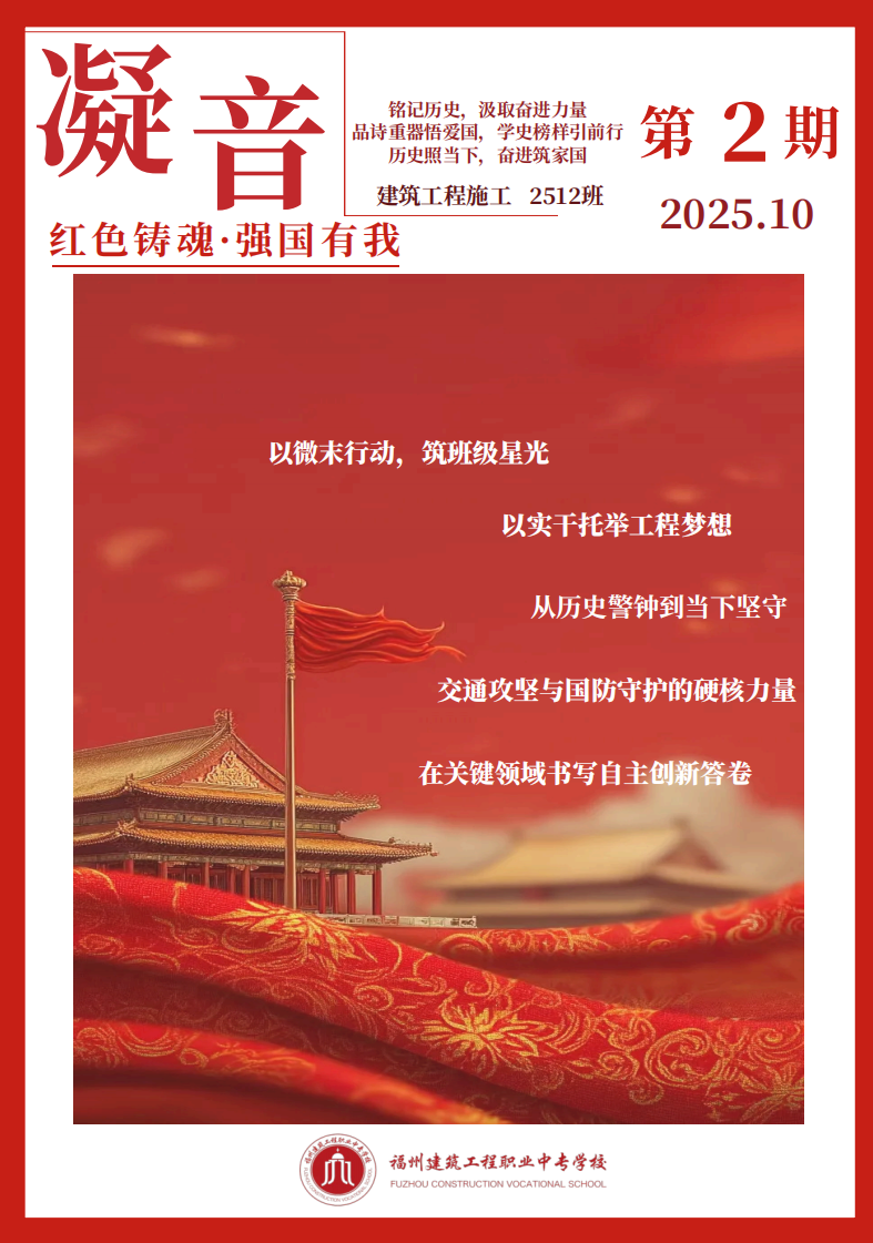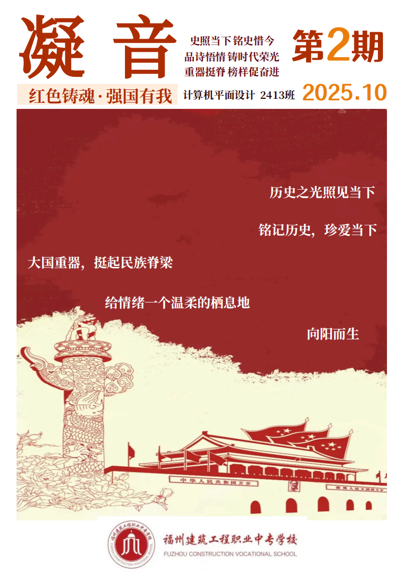 此次“一班一刊”制作活动,既是一次爱国主义教育的生动实践,也是一场班级文化建设的创意比拼。从前期赋能培训到后期作品打磨,每一个环节都凝聚着师生的共同努力。不仅诞生了一批高质量、富专业特色的班刊作品,更在全校范围内营造了浓厚的爱国氛围与精益求精的学习风气。学生们的国家认同感、民族自豪感与专业使命感得到显著增强,为学校爱国主义教育与德育工作注入了新的活力,也为培养能够担当民族复兴大任的时代新人探索了切实有效的实践路径。