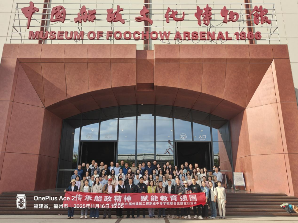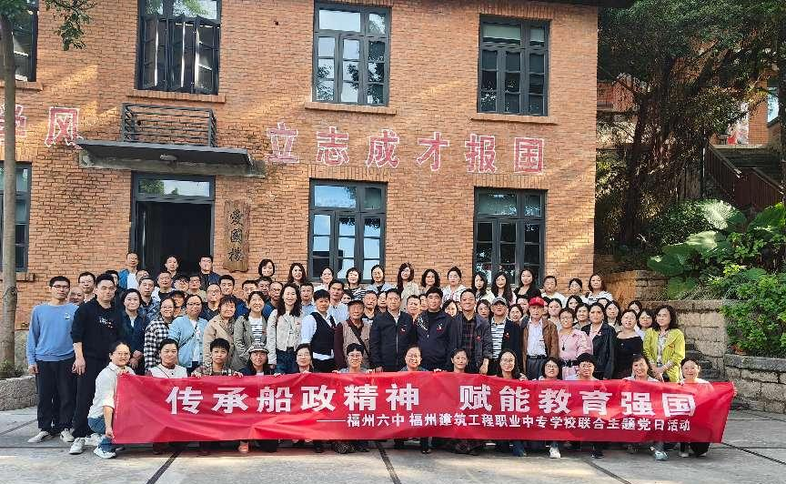 为深刻领会船政精神的时代价值,推动教育工作者在教育强国建设中主动担当,2025年11月16日下午,福州建筑工程职业中专学校与福州六中联合组织党员教师,赴福州马尾开展“传承船政精神,赋能教育强国”主题党日活动,通过研学交流、专题党课、实地探访等形式,让红色基因与教育使命深度融合。
