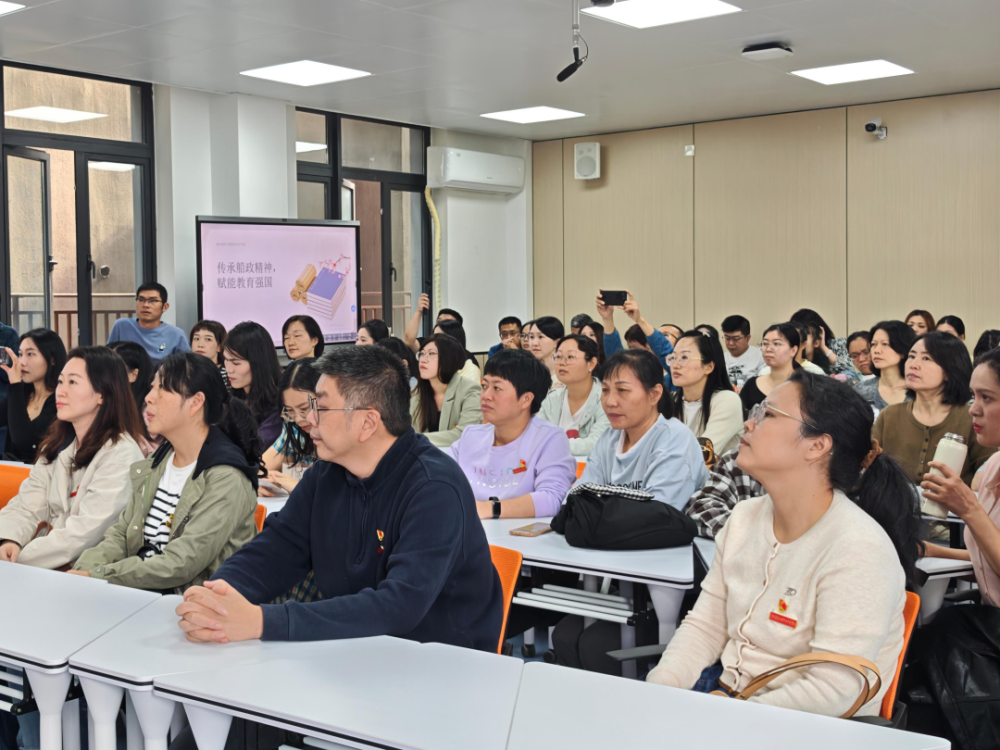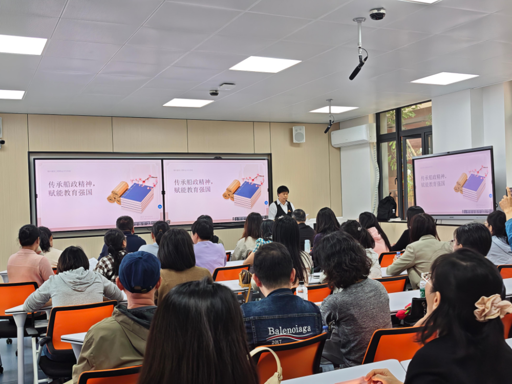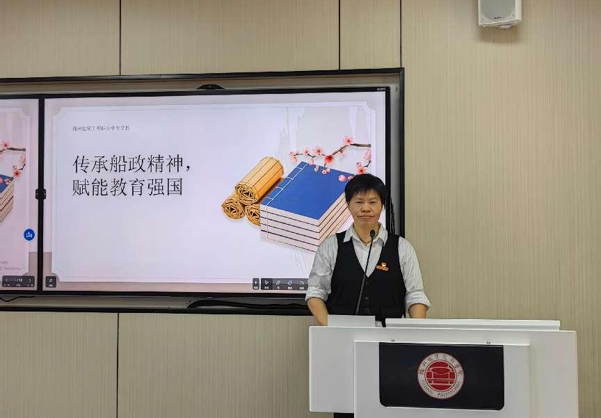 在专题党课环节,蔡冠蓉副校长以“传承船政精神,赋能教育强国”为主题,系统阐释了船政文化的起源与发展。党课从1866年左宗棠创办福建船政的历史背景切入,回顾了这一洋务运动标志性成果在近代中国的革新实践——船政学堂作为中国第一所近代化海军学堂,开创了“双师型”教学、中西合璧教育范式,打破了传统教育的桎梏,培养出严复、詹天佑、邓世昌等一大批推动中国近代化进程的杰出人才。党课深入解码了船政精神中“自强担当、中西合璧、忠诚报国”的核心内涵与新时代教师使命的三重契合,结合中职教育特点提出,教师应锤炼“双师型”素养、深化教学模式改革、打造“课程思政”精品,将船政精神转化为育人实效,让在场党员深受启发。
