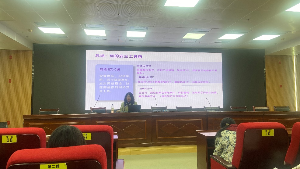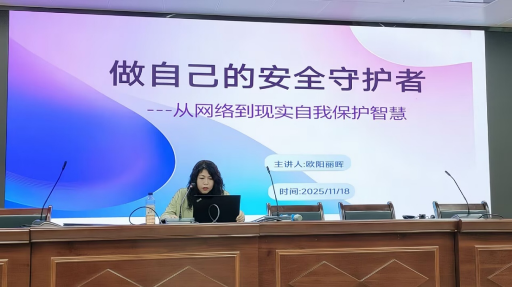 11 月 18 日下午,《做自己的安全守护者》女生专题讲座如期举行,经验丰富的欧阳丽晖老师担任主讲。她明确指出,讲座核心并非渲染恐惧,而是为女生 “赋能”,帮助大家掌握识别、规避、应对风险的知识技能,最终实现 “安全自信生活在城市每个角落” 的愿景。讲座围绕青春期风险分析、网络诈骗与霸凌防范、网恋陷阱识别、线下恋爱边界维护、出行独处安全等现实议题,结合真实案例深入剖析,反复强化 “我的身体,我做主,我的权益不容侵犯” 的自我保护意识。互动环节中,欧阳老师通过提问、情景假设调动全场积极性,同学们踊跃交流困惑,在思维碰撞中深化安全认知,锻炼应变能力。