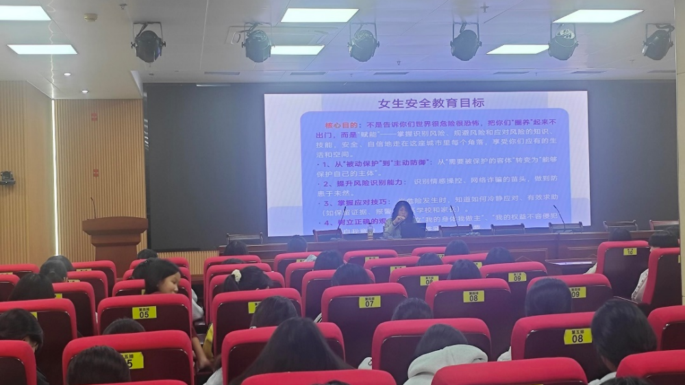 三场系列讲座各有侧重、层层递进,既涵盖安全防护的实用技能,又包含人格塑造的精神引领,更有职业发展的长远规划。从高一新生到中职学子,学校以精准化的教育服务,为女生们撑起成长 “安全伞”,播撒自我赋权的种子。系列活动的成功举办,不仅为女生们提供了全方位的成长指导,更彰显了学校对女生群体健康发展的重视,为培养自尊、自信、自立、自强的新时代女性奠定坚实基础。