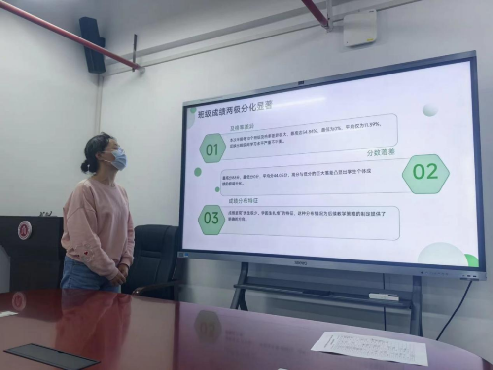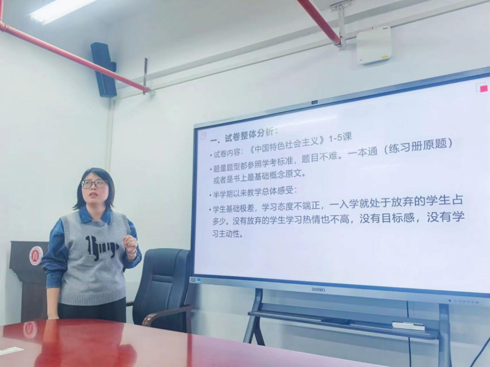 研讨环节,各科任教师依次发言,结合学科特点展开精准分析:专业课教师提出,部分学生对专业基础知识掌握不扎实,在案例分析题中缺乏问题解决能力,部分学生存在专业认知模糊、知识迁移能力不足等问题;文化课教师则指出,学习习惯的养成很重要,要加强学生预习、听课、复习、作业巩固等环节,基础学科的薄弱影响了学生对知识的深层理解。老师们各抒己见,现场形成分层教学、案例教学等等多项改进思路。