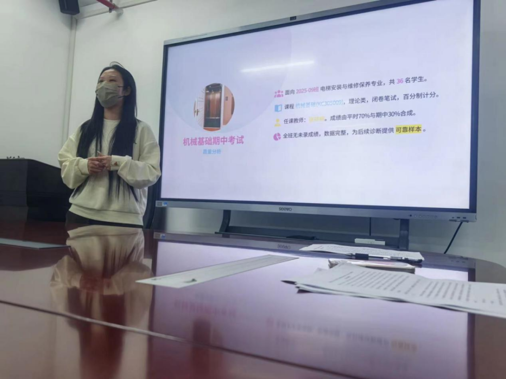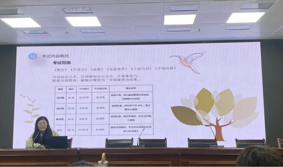 25 级质量分析会由教务处副主任谢小芳主持,谢小芳副主任聚焦职专一年级基础阶段学生的成长规律,提出该阶段教学需充分契合学生认知实际,从基础知识巩固、学习习惯培养、学习自信心建立等核心环节稳步推进。