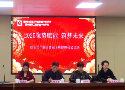 冬阳暖照聚合力,产教融合启新程。12月11日上午,福州建筑工程职业中专学校“2025聚势赋能,筑梦未来”校企合作签约暨冠名班授牌仪式在三部6号楼十二楼会议室隆重举行。校党委书记陈乐平、副校长蔡冠蓉、副校长陈翠琼、副校长严凌旭,和福州弘视通电子科技有限公司、福建东荣建设工程有限公司、福建美邦建设工程发展有限公司、福建环奥电梯科技股份有限公司、福建住建建设有限公司、福建汇仟测绘技术有限公司、天和国咨控股集团有限公司、福州庆诚灌溉设备有限公司八家企业代表共同出席,携手开启校企协同育人的新篇章。