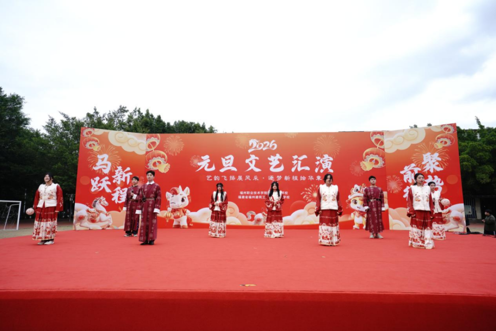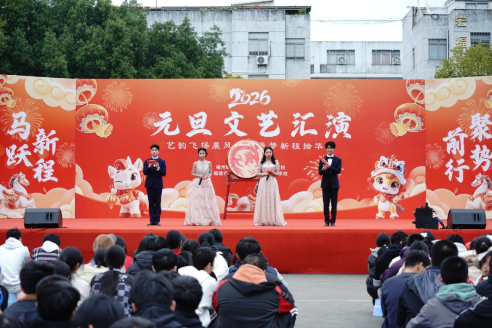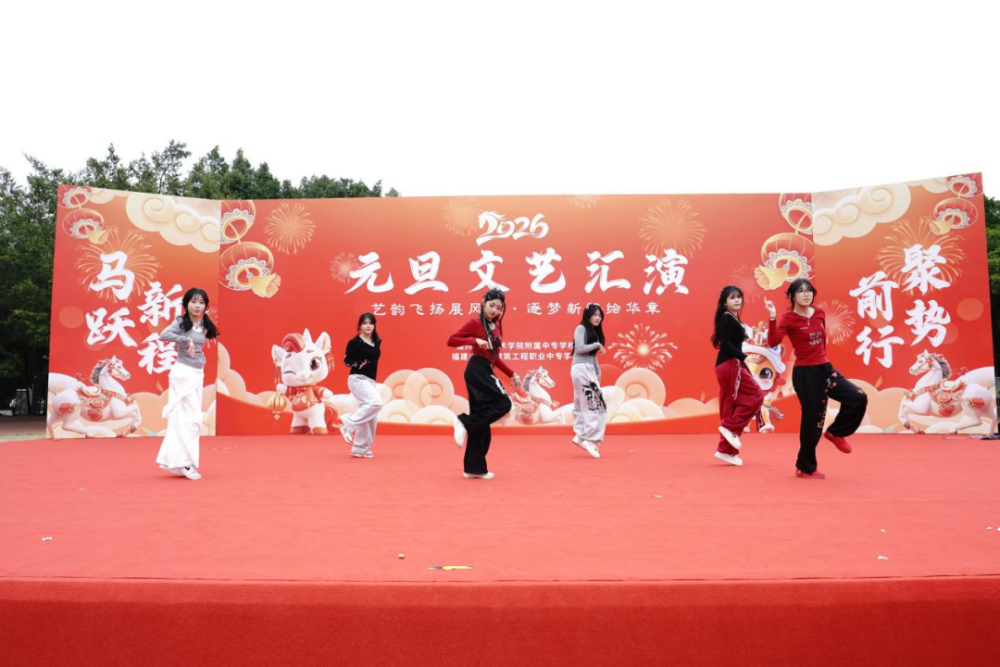 福州建筑工程职业中专学校“艺韵飞扬展风采 逐梦新程绘华章”元旦迎新联欢文艺汇演在学校大操场隆重举行。全校师生欢聚一堂,共赏视听盛宴,在欢声笑语中迎接2026新年的到来。
