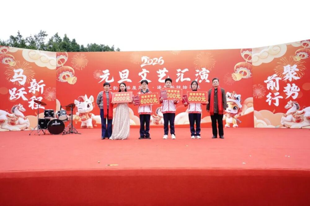 随后,国家奖学金和青苗奖颁奖仪式隆重举行。一张张奖状,记录了他们的奋进身影,也展现了职教学子的卓越风采,更激励着现场全体同学奋勇争先、笃行不怠。本次汇演历时两个小时。在舞台上,演员们精神饱满、自信从容,用最真挚的情感、最灵动的表演诠释着对新年的喜悦。舞台下,观众们热情高涨,不时随着律动挥舞双手,为精彩的表演呐喊助威,掌声、欢呼声不绝于耳,整个操场成为了欢乐的海洋。