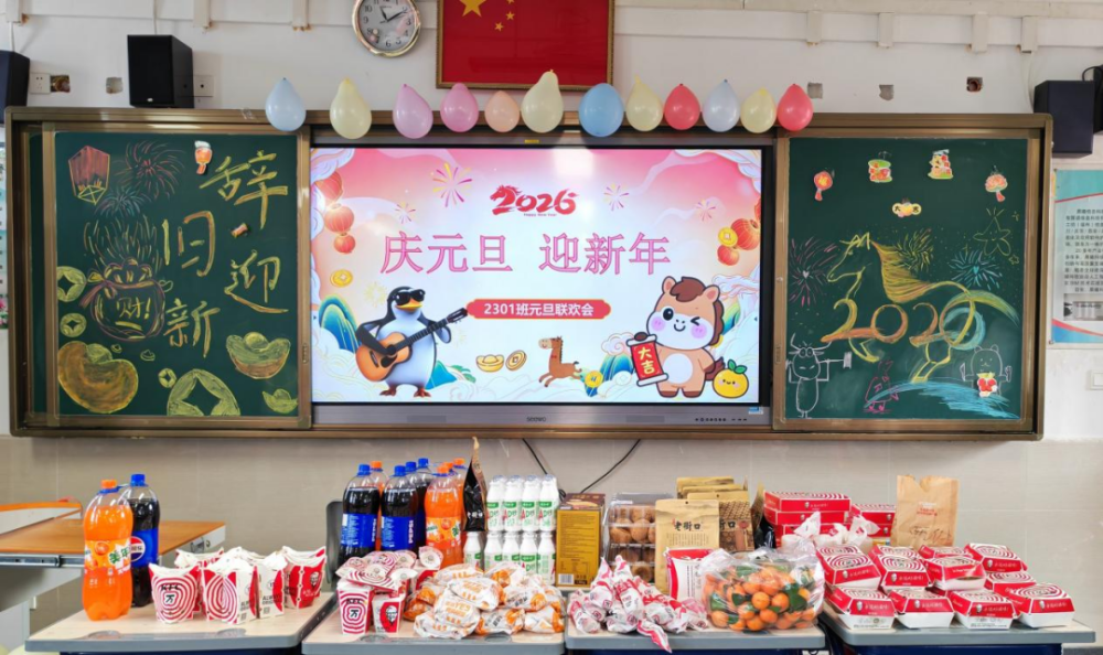 岁末甫至,新元肇启。为传承中华优秀传统文化,营造欢乐祥和的节日氛围,增强班级凝聚力,我校各班级于元旦当日隆重举办“喜迎元旦”主题庆祝活动。同学们在精心布置的教室里载歌载舞、互动嬉戏,用欢声笑语定格美好时光,共同迎接新年的到来。