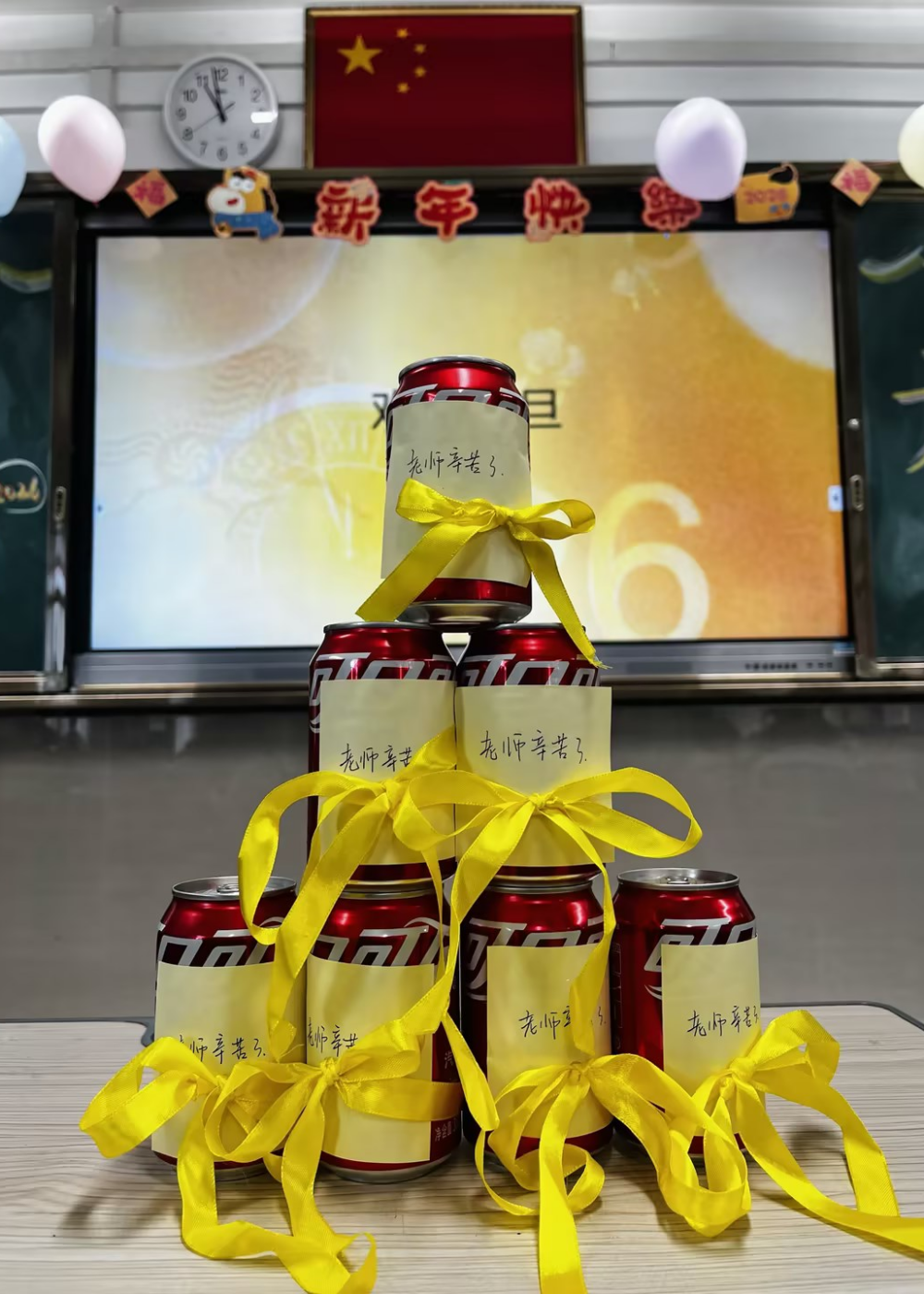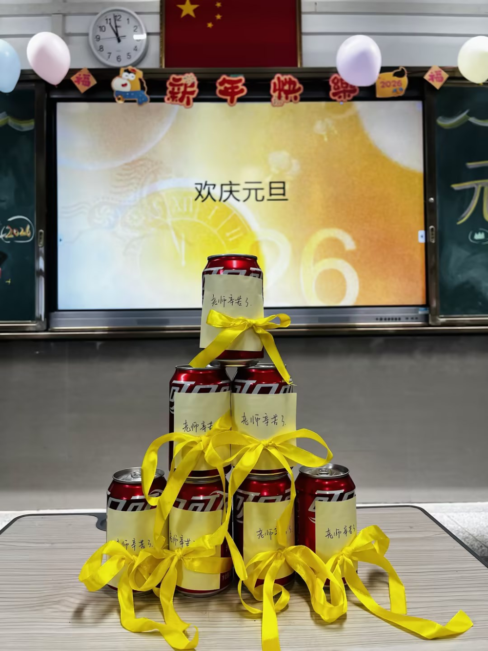 活动尾声,全体同学和老师们齐聚一堂合影留念,镜头定格下一张张洋溢着幸福的笑脸,记录下这份专属的班级记忆。主持人再次登台进行总结致谢,祝愿老师和同学们新年快乐、万事如意,本次元旦主题活动在温馨祥和的氛围中圆满落幕。