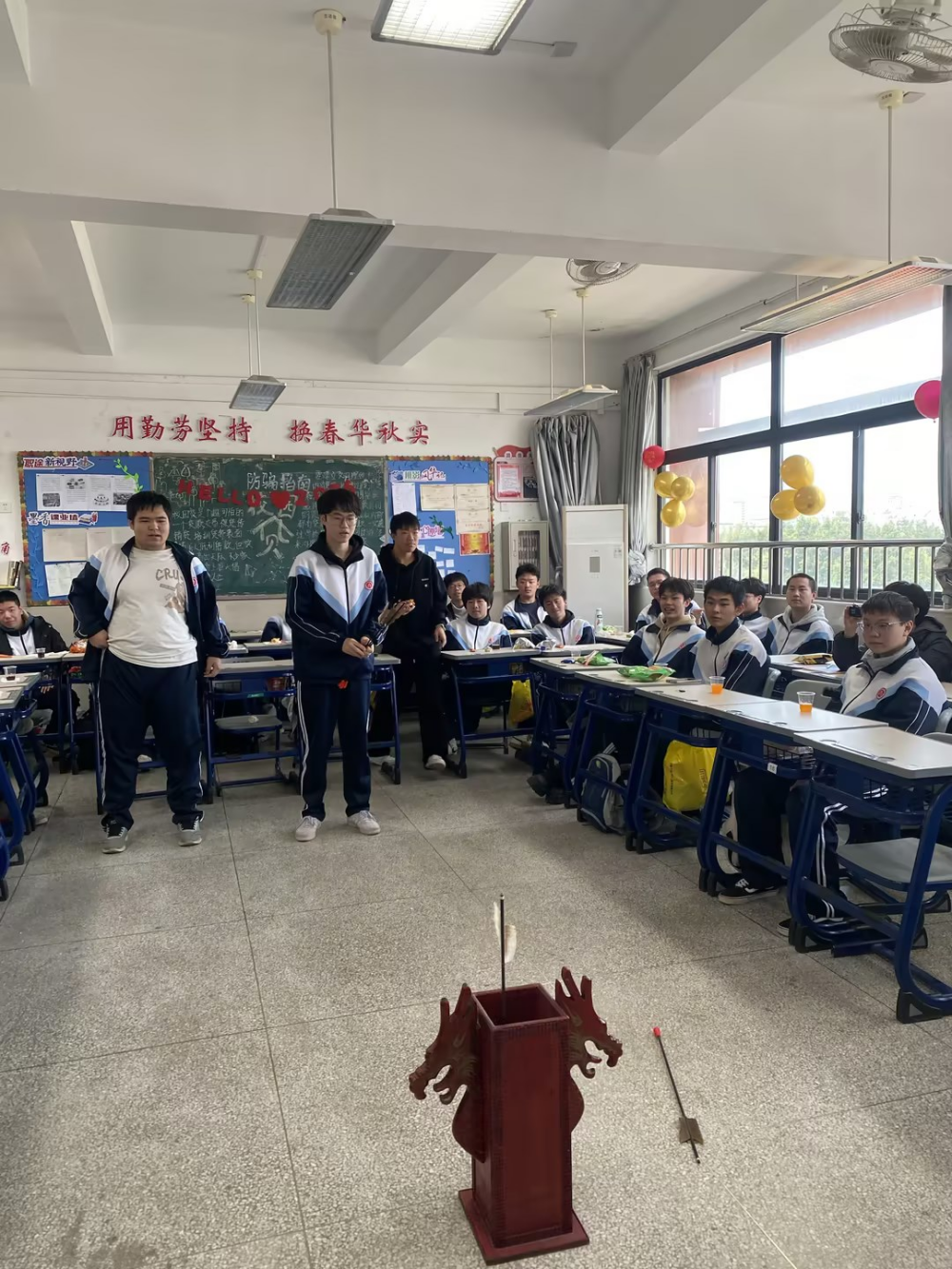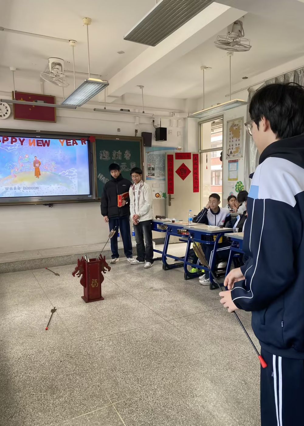 游戏互动环节充满趣味与挑战,各类小游戏,进一步拉近了同学间的距离。各类小奖品引发阵阵欢呼,中奖的同学喜笑颜开,未中奖的同学也在一旁欢呼喝彩,欢乐氛围感染全场;投壶游戏里,同学们依次排队投壶,10秒的时限让现场气氛紧张又刺激,不符合规则的同学主动接受小惩罚,最后胜出的同学收获了专属奖励,欢声笑语此起彼伏。
