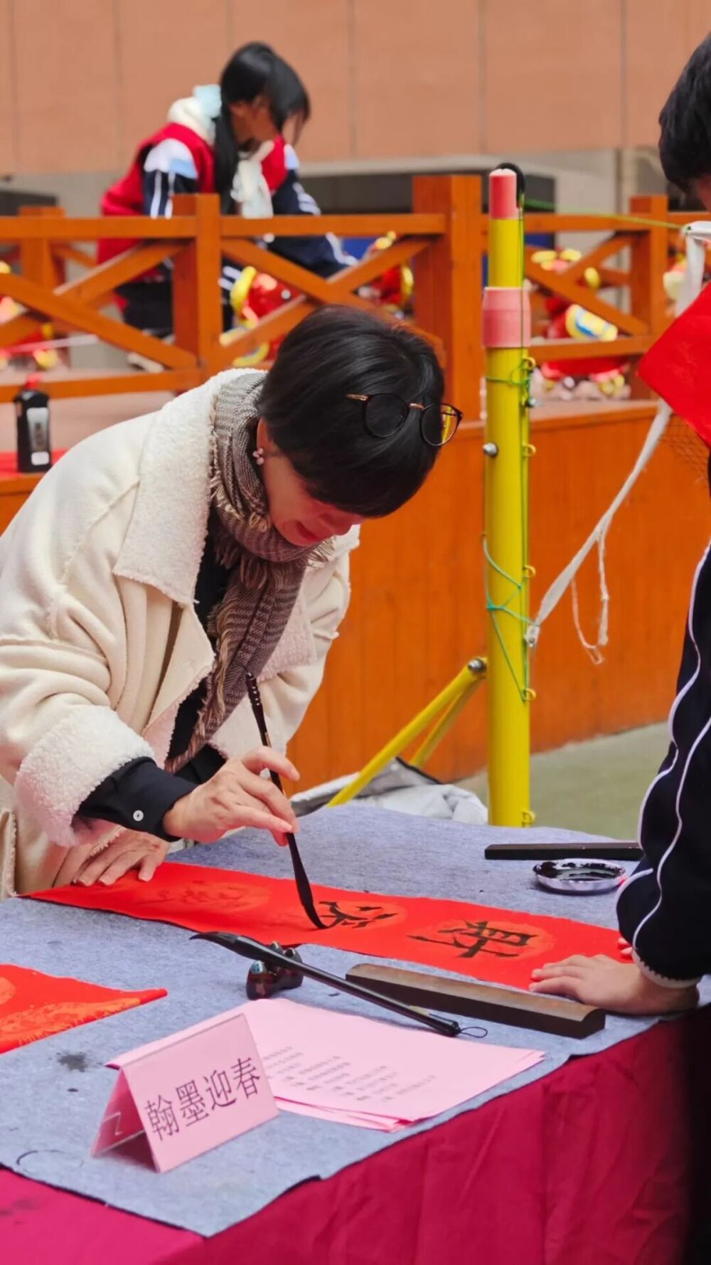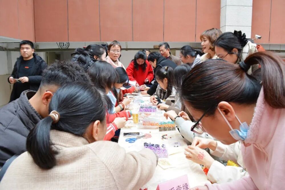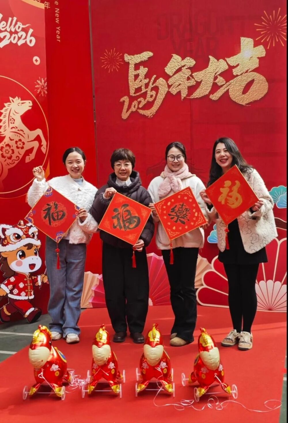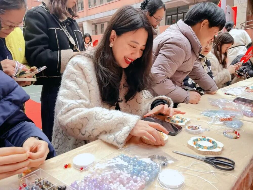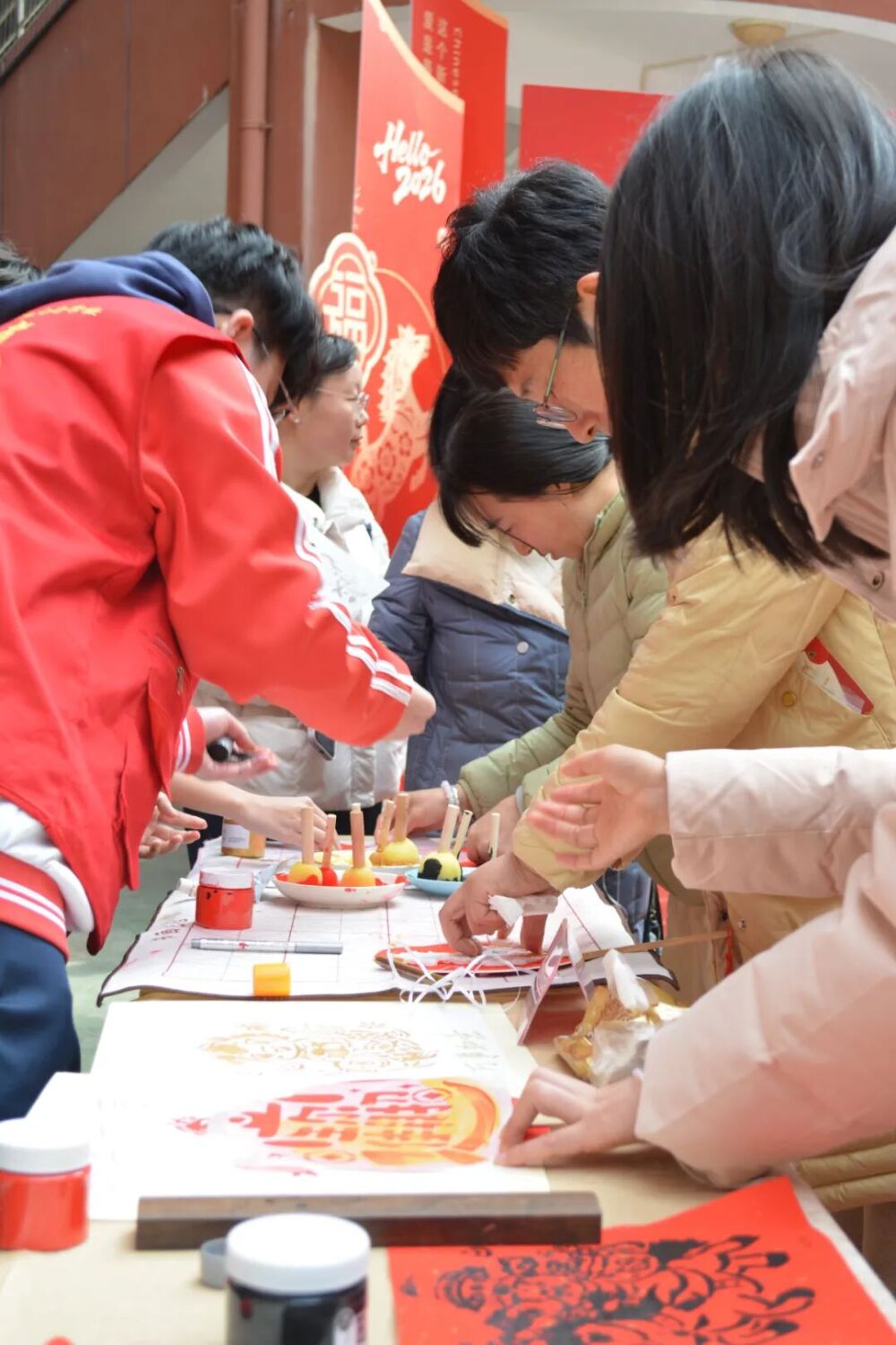 活动现场气氛热烈,教职工们或同事结伴,或与学生共同参与,在各个项目间流连体验,轻松畅聊。孩子们的笑脸、老师们舒展的眉头,与现场悬挂的红灯笼、中国结交相辉映,构成了一幅和谐动人的校园迎春画卷。