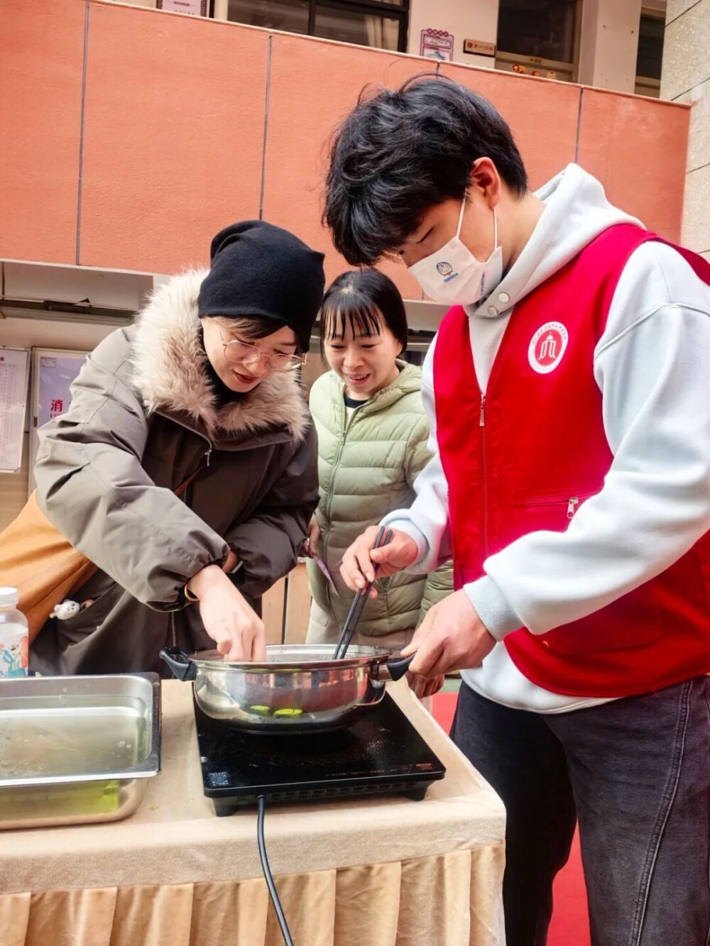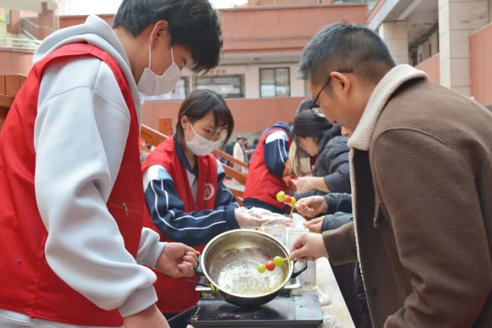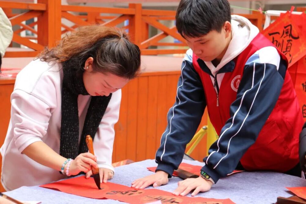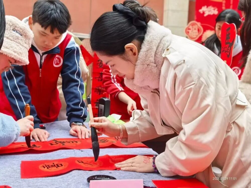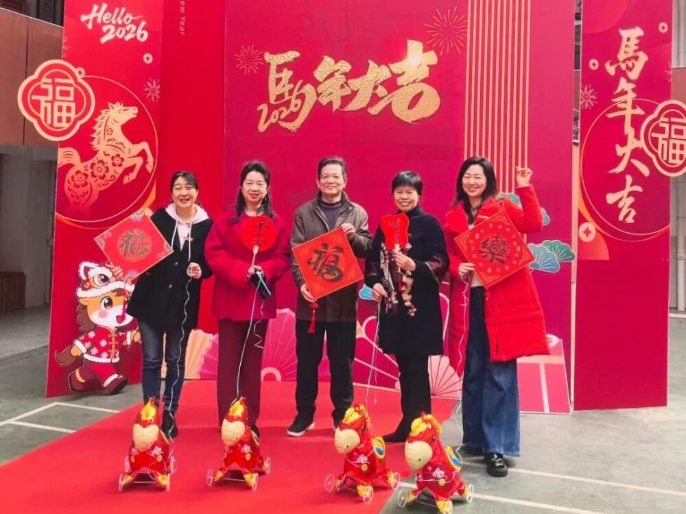活动现场气氛热烈,教职工们或同事结伴,或与学生共同参与,在各个项目间流连体验,轻松畅聊。孩子们的笑脸、老师们舒展的眉头,与现场悬挂的红灯笼、中国结交相辉映,构成了一幅和谐动人的校园迎春画卷。