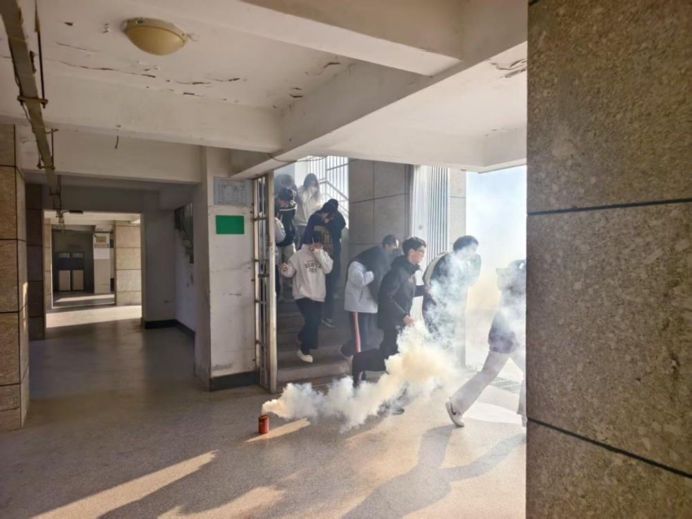 随着应急警报信号准时响起,演练正式拉开帷幕。接到疏散指令后,各班学生在班主任的有序引导下,迅速起身,双手捂鼻、弯腰低姿,沿预设逃生路线,快速、有序地向操场安全区域撤离。过程中,学生们严格遵守疏散纪律,不追逐、不喧哗、不逗留,听从老师和工作人员的指挥,展现出良好的纪律素养和应急反应能力。短短几分钟内,所有学生均安全撤离至操场指定区域,整个疏散过程高效、平稳、无意外发生。