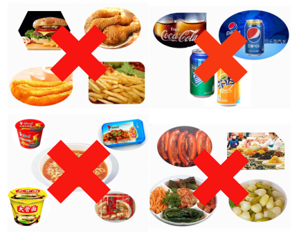这类食物高油、高盐、高糖,长期食用易引发肥胖、近视加深、肠胃疾病哦!