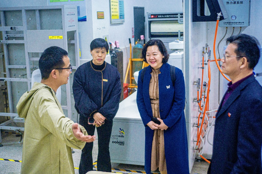 严谨院长一行实地走访了我校智能设备运行与维护相关实训基地、鲁班文化体验馆、心理咨询室等场所,详细了解学生实训技能培养及身心发展情况。一行人对我校在贯通班学生培养中体现出的系统性、专业性与创新性给予高度评价。