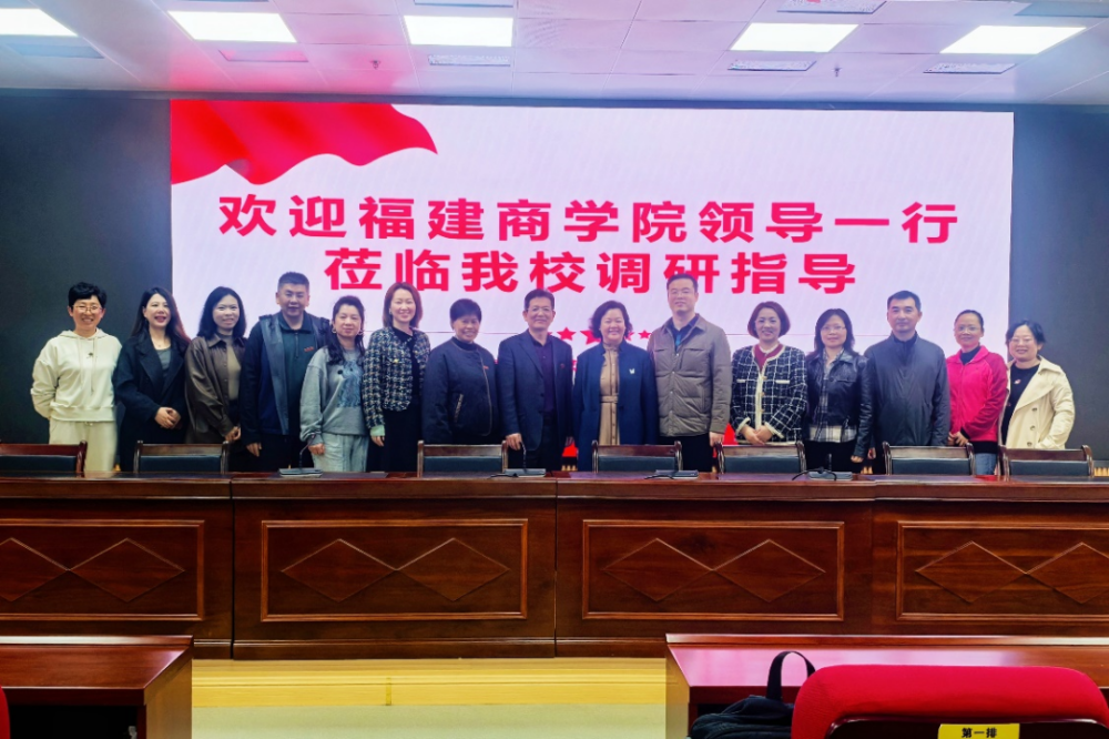 为深化职业教育改革,推进“3+4”中本贯通人才培养模式创新,强化中职与本科教育有机衔接,4月3日下午,福建商学院工商管理学院院长严谨率队莅临我校,就两校合作开展的“3+4”中本贯通项目进行校际交流,并看望2025级贯通班全体学生。福建商学院学工部副部长林景行、工商管理系主任谢桂花、物流管理系副主任黄曼以及工商管理系的教师们随同。校党委书记陈乐平,副校长蔡冠蓉、陈翠琼、严凌旭及相关职能处室负责人全程陪同。