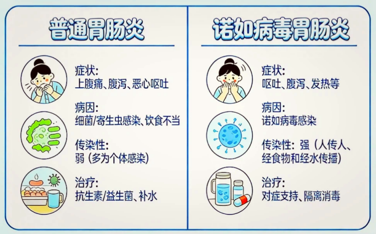 传染性极强,是校园聚集性发病的 “头号元凶”。传播途径:粪-口传播为主,通过接触被污染的手、食物、水、物品,以及呕吐产生的气溶胶传播。⭐️主要症状:恶心、反复剧烈呕吐、水样腹泻、腹痛、低热,儿童以呕吐为主,成人腹泻更常见。特点:发病快、潜伏期短(12-48 小时),恢复也较快,但极易在校园快速扩散,酒精消毒无效。